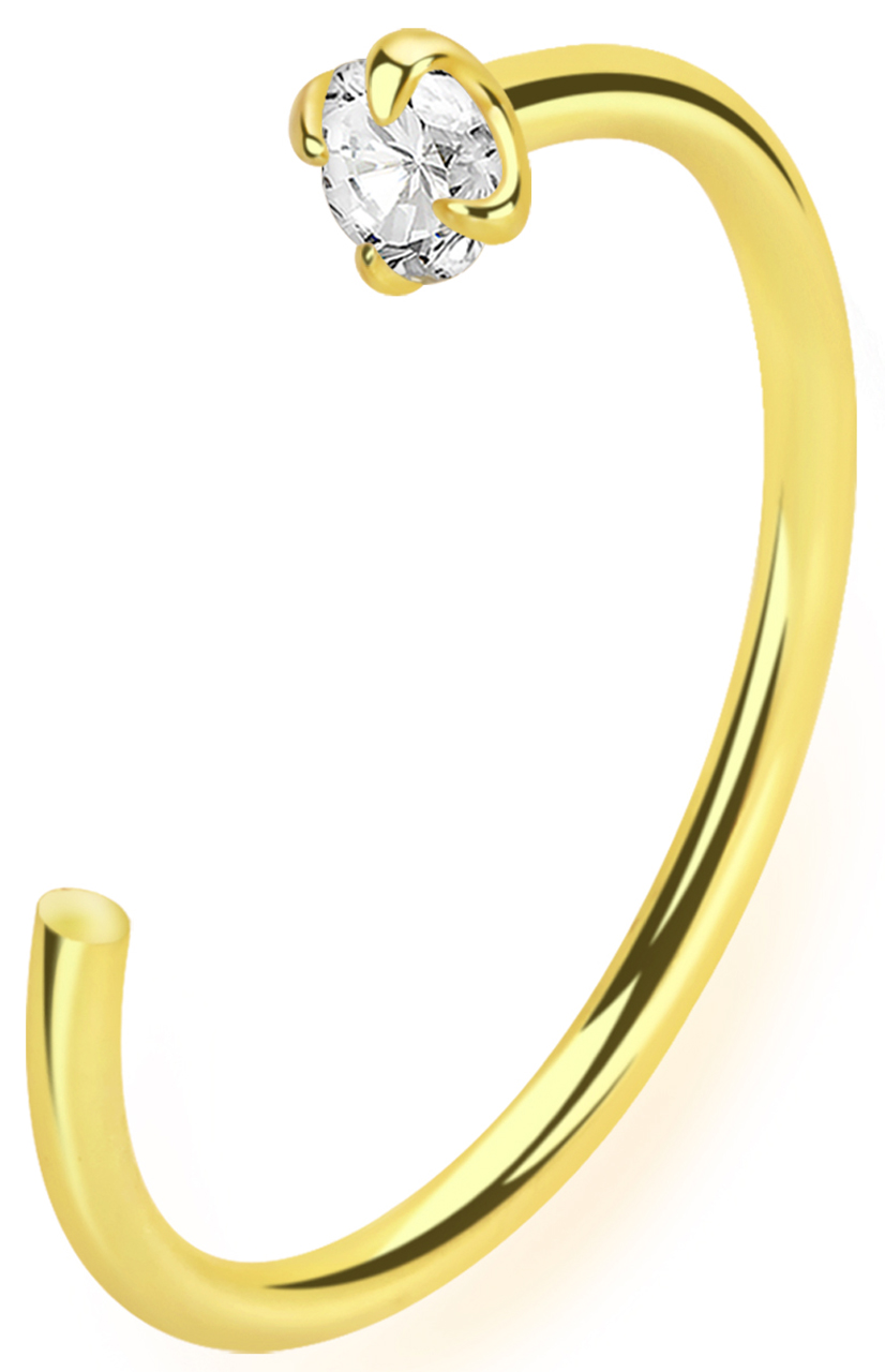 Piercing Stahl Nasenstecker mit Stein, vergoldet + 0,8 mm Spirale