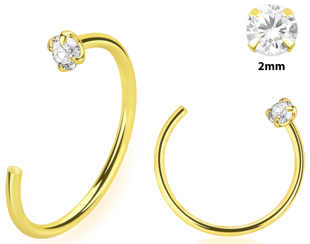 Das Design des Hoop Nasenrings wird durch einen präzise gefassten Stein in klarer Ausführung veredelt, der einen subtilen, aber wirkungsvollen Funkelpunkt setzt. Der Stein hat einen Durchmesser von 2,0 mm und ist so dimensioniert, dass er auffällt, ohne dabei zu dominieren. Eine besondere Raffinesse bietet der integrierte Stein-Stopper. Dieses durchdachte Detail sorgt dafür, dass der Stein sicher an seiner Position im Ring gehalten wird und nicht unerwünscht verrutschen kann. Dies gewährleistet nicht nur die dauerhafte Ästhetik des Schmuckstücks, sondern auch einen sorgenfreien Tragekomfort, da der Besitzer sich keine Gedanken über den Verlust oder die Verschiebung des Steins machen muss. Der Stopper ist ein praktisches Element, das Funktionalität und Design harmonisch miteinander verbindet.